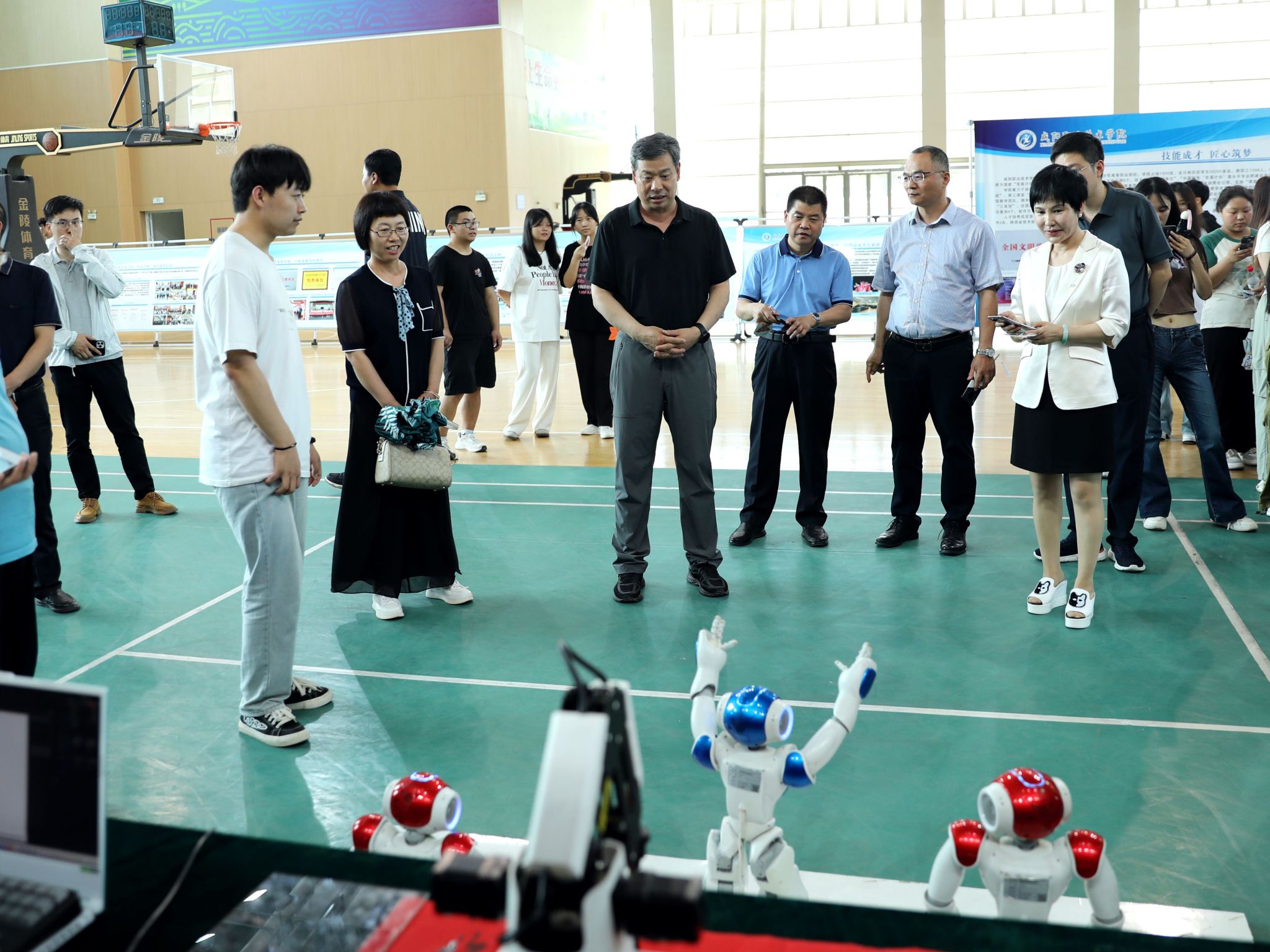 启动仪式后,学院党委书记张迪,党委副书记张建刚,副院长芮红亚、杨新宇和相关部门负责人来到学院技能展示活动现场,与展示学生亲切交谈,勉励各位同学要努力提升专业技能,主动服务国家战略,助力发展新质生产力。