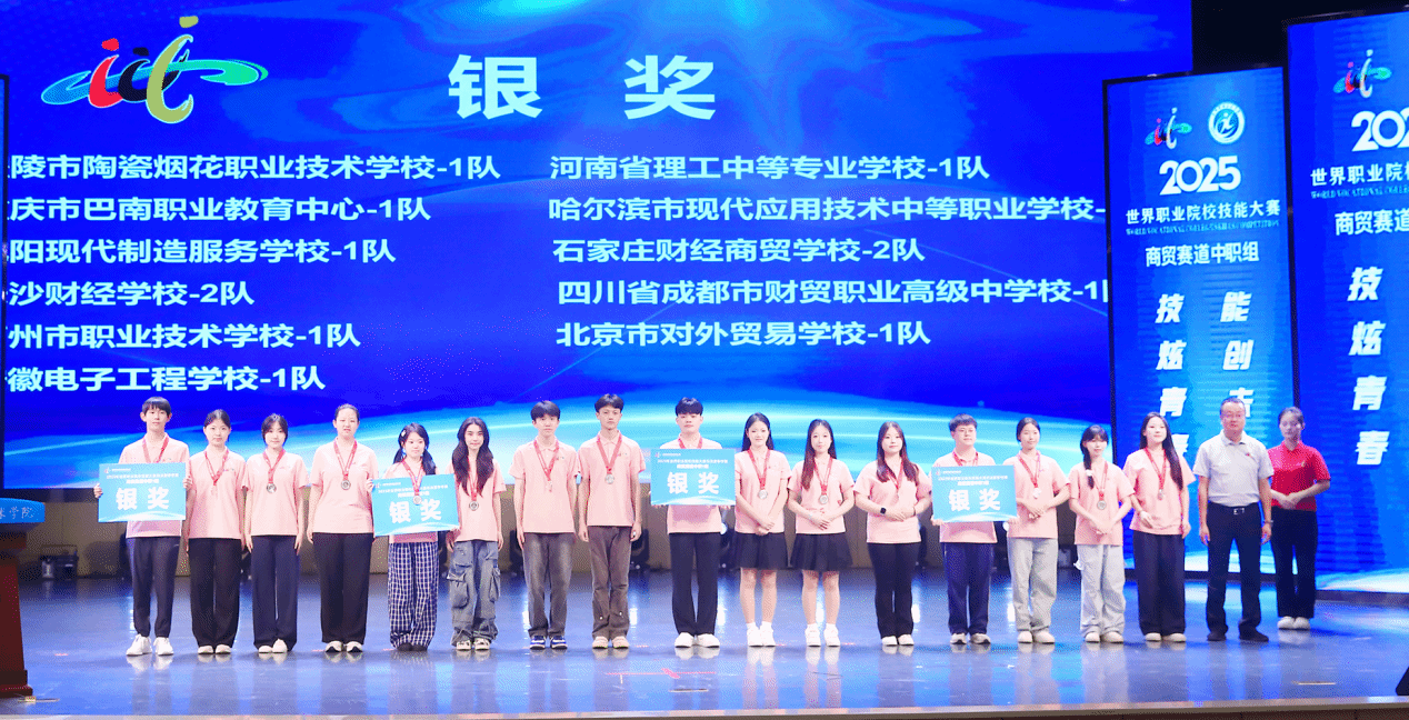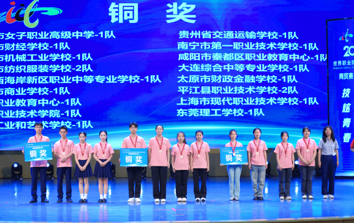 闭赛式上,裁判长宣布了比赛结果。助理裁判长对本次比赛参赛总体情况、赛事亮点与改进方向进行了点评。对本次大赛组织给予高度评价,肯定咸阳职院组织周密、保障尽责,确保了比赛圆满成功。经过评选,吉林经济贸易学校1队、平顶山市财经学校1队、义乌市城镇职业技术学校1队、福建省泉州华侨职业中专学校1队、福州商贸职业中专学校1队、昆山花桥国际商务城中等专业学校1队等6支队伍获金奖,醴陵市陶瓷烟花职业技术学校1队等11支队伍获银奖,重庆市女子职业高级中学1队等17支队伍获铜奖。与会嘉宾和咸阳职院领导为获奖参赛队伍颁奖。