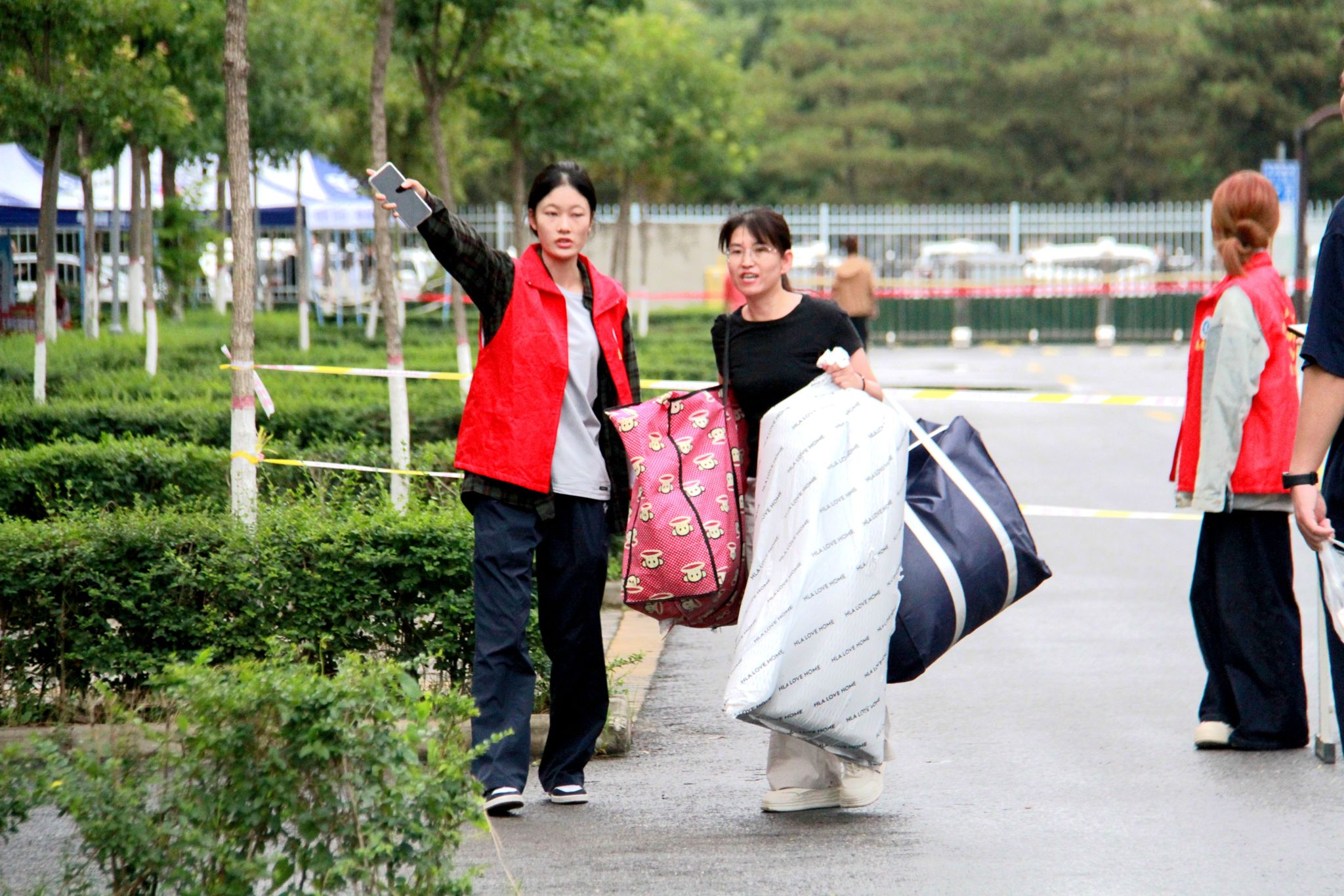报到现场,各二级学院分别设立报到点,师生、志愿者们热情引导新生办理入学手续,通过手机客户端迎新模块了解报到流程、完成线上缴费、查询宿舍安排,享受快捷报到,实现“掌上迎新”。学院同步开通“绿色通道”,为家庭经济困难学生提供精准帮扶,传递人文关怀和教育温度。从火车站、高铁站开往校园的10辆迎新专车,实现了“从站点到宿舍”的无缝衔接。数百名“红马甲”志愿者活跃在校园各个角落,提供引导、咨询、帮扶等贴心服务,让新生与家长倍感温暖。