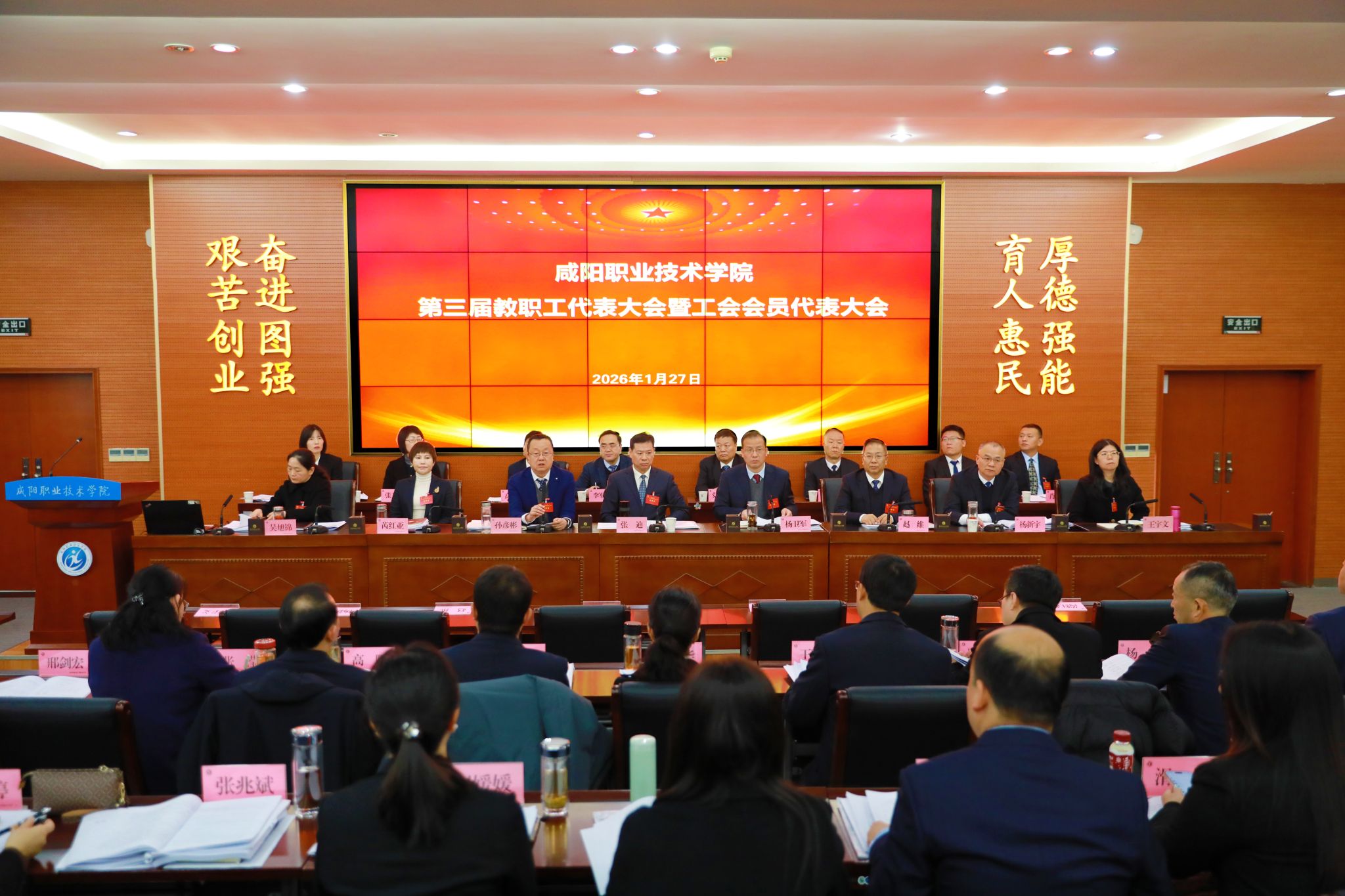 踔厉奋发“十五五”,凝心聚力启新局。1月27日,咸阳职院第三届教职工代表大会暨工会会员代表大会(以下简称“双代会”)召开。学院领导张迪、杨卫军、孙彦彬、赵维、芮红亚、杨新宇、吴旭锦、王宇文出席会议。党委书记张迪讲话,院长杨卫军作学院工作报告,党委副书记孙彦彬主持会议。125名代表齐聚一堂,共商学院发展大计,共绘高质量发展新蓝图。