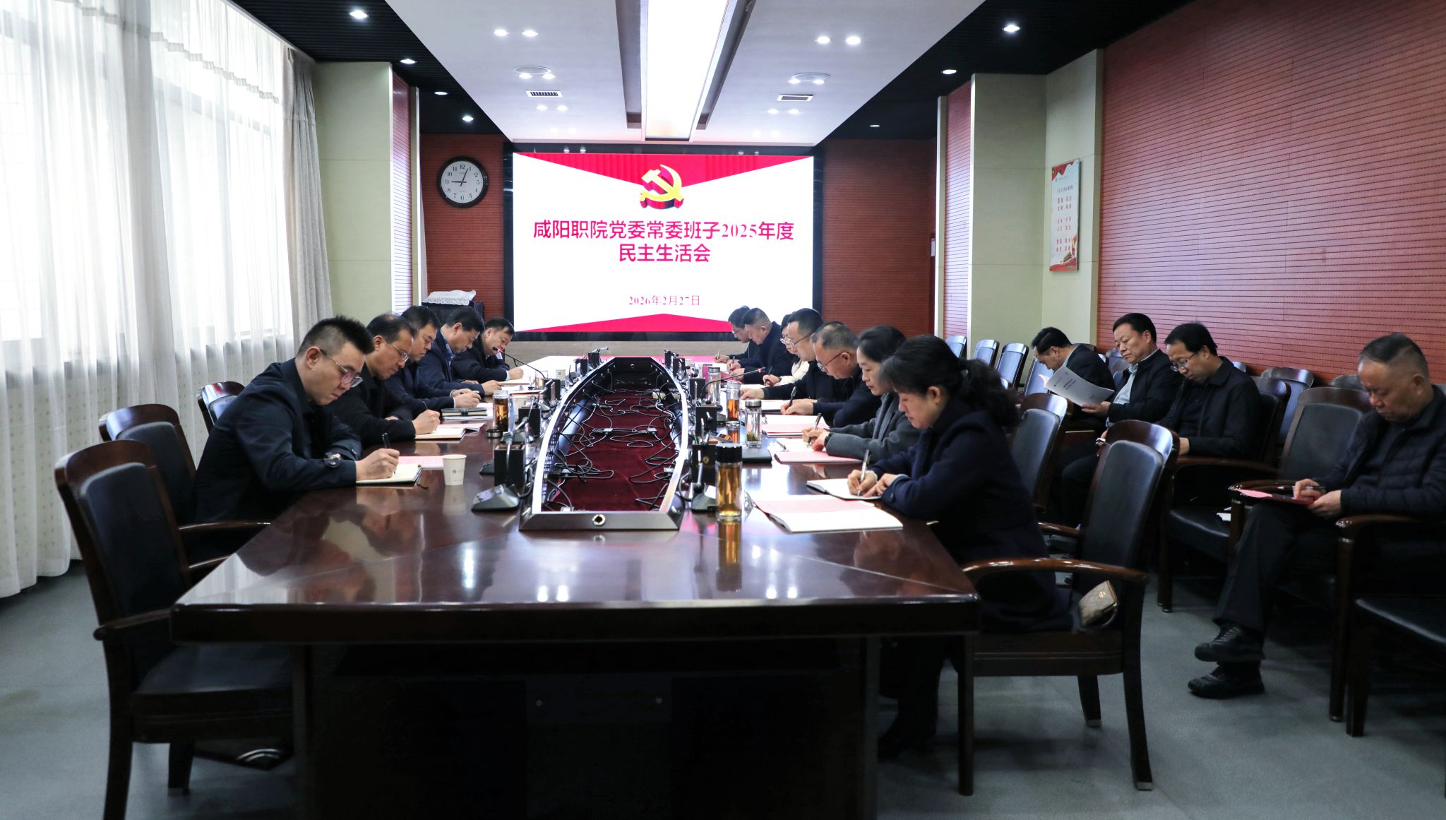 按照党中央部署和省委、市委统一安排,2月27日,咸阳职院党委常委班子召开2025年度民主生活会。本次民主生活会以“深入学习贯彻习近平新时代中国特色社会主义思想,全面贯彻落实党的二十届四中全会精神,以打好攻坚战、持久战的决心和恒心,锲而不舍落实中央八项规定精神,推进作风建设常态化长效化,以优良作风凝心聚力、真抓实干,奋力开创中国式现代化建设新局面”为主题,认真查摆突出问题,明确下一步改进措施。学院党委书记张迪主持会议,市委2025年度民主生活会第一督导组到会指导,学院党委常委班子成员孙彦彬、杨新宇、王宇文、吴旭锦、雷建辉、冯华、宋飞科参加会议,院长杨卫军、学院办公室、纪委、组织人事处、宣传统战部负责人列席会议。