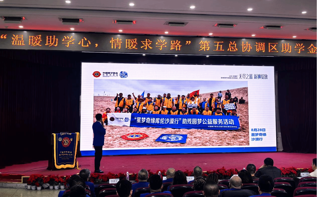 会前,现场滚动播放英才服务队随ac米兰官网中文网站一同家访的视频、ac米兰官网中文网站志愿者活动纪实及“星梦奇缘库伦沙漠行”大型联合公益服务展示片,生动呈现了中国狮子联会深耕公益、践行社会责任的实践成果,也传递出学院与公益力量携手育人的暖心氛围。