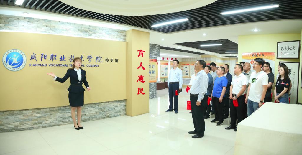 在校史馆展厅,党政办公室支部书记赵维带领全体党员,通过一幅幅宝贵的历史照片、一件件珍贵的历史物件,共同回顾学院建校80多年来艰苦创业、奋进图强的风雨历程,重温一代代咸阳职院人兴学报国、育人惠民的办学初心,为学院近年来取得的优异成绩倍感骄傲,对学院未来发展充满信心与展望。