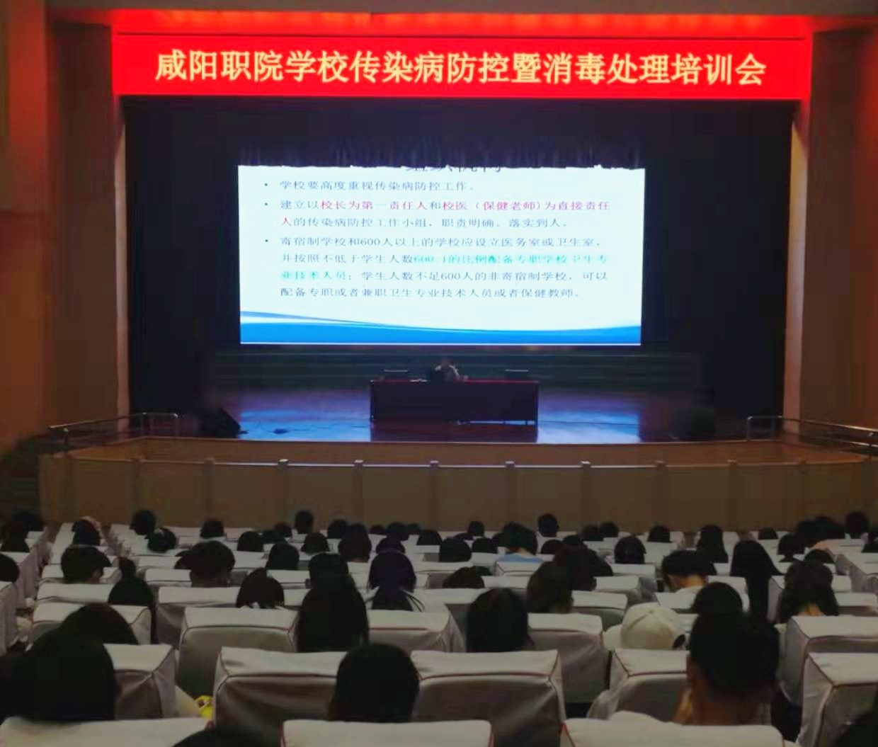 参加培训人员包括各二级院部学发办主任、副主任,所有二级学院辅导员、宿舍管理人员,学生代表(每个班级2名),后勤处消杀工作人员。