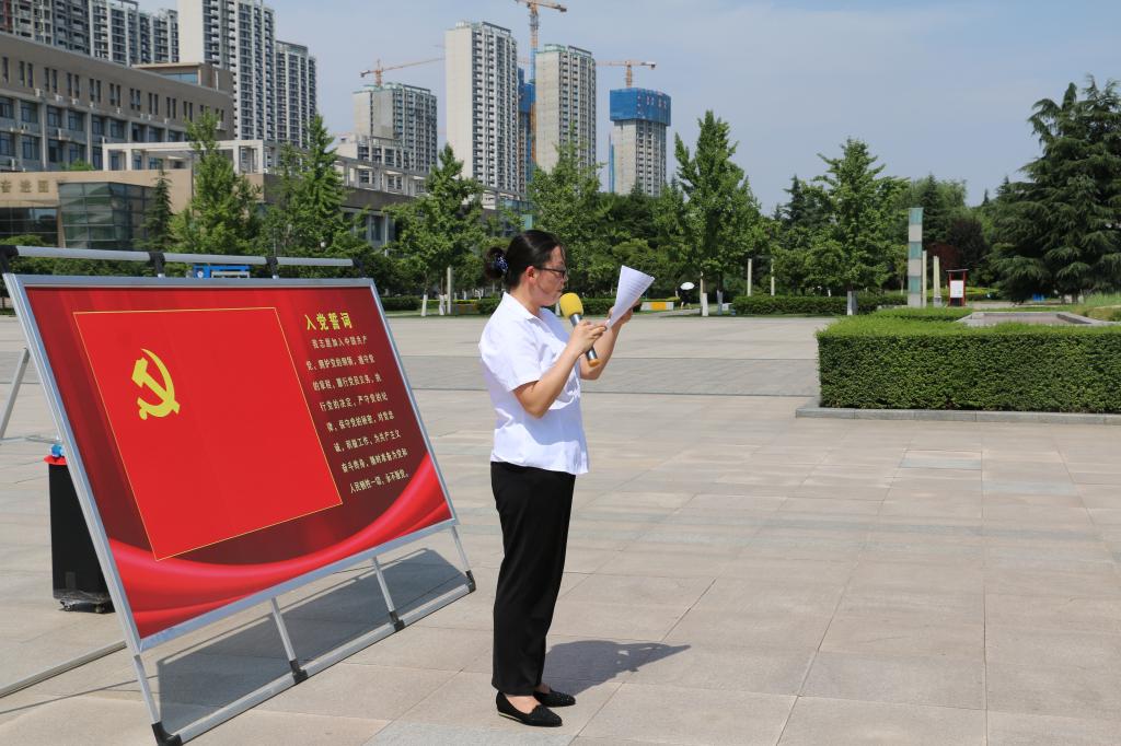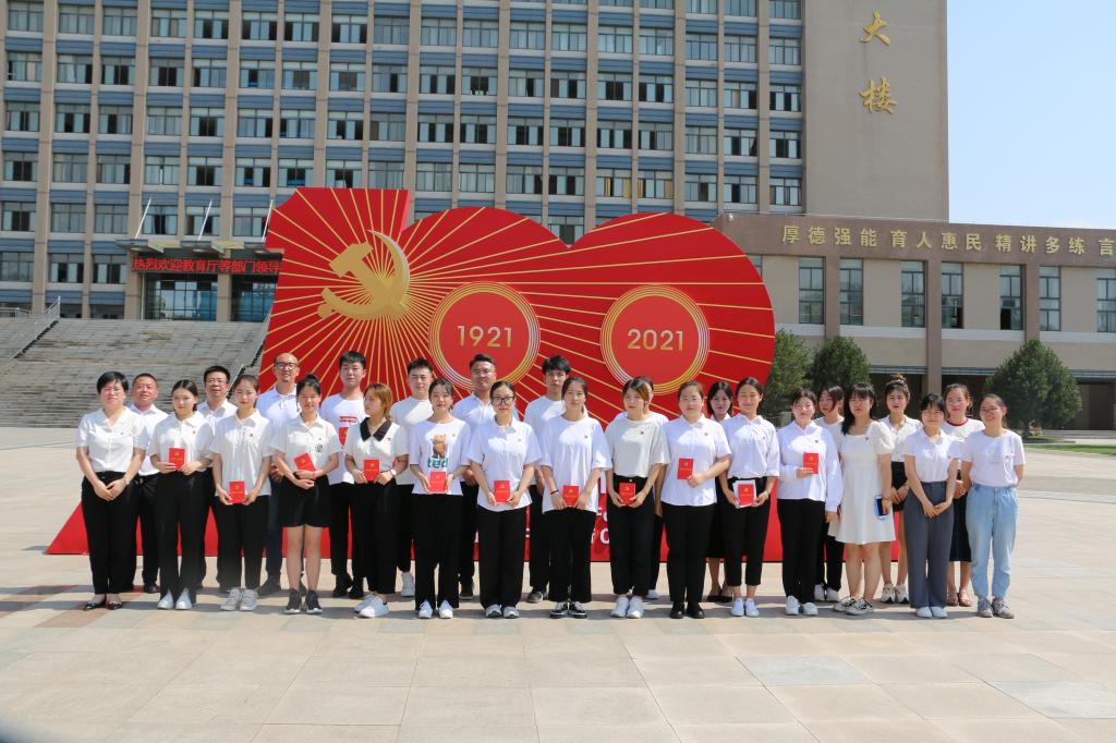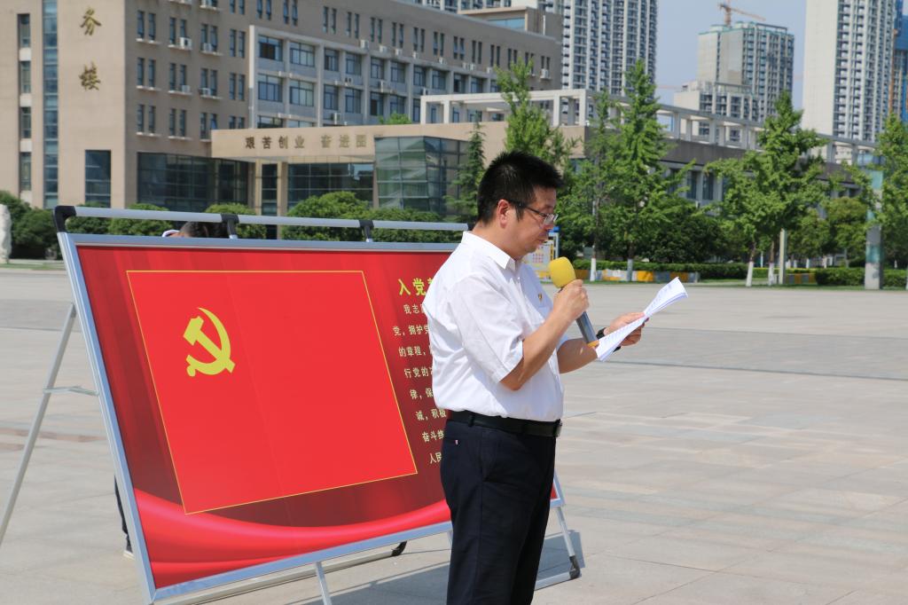 6月30日,财经学院党总支于超越广场开展党总支重温入党誓词暨预备党员入党宣誓活动,宣誓活动由教工党支部书记张颖同志主持,28名老党员,20名预备党员参加。
