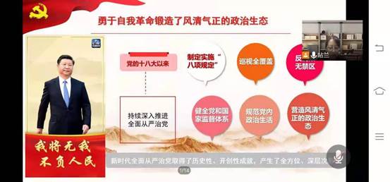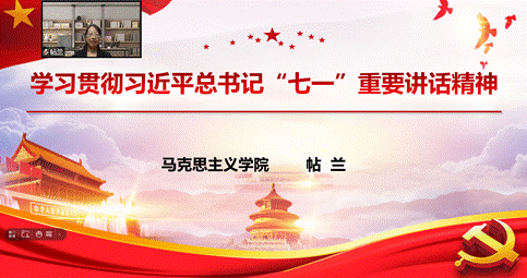 为深入学习贯彻习近平总书记“七一”重要讲话精神,8月5日上午9时,基础部特邀宣讲团专家、马克思主义学院帖兰老师举办宣讲活动,对“七一”讲话精神做了详细解读。基础部全体教师参加,会议以线上方式进行。